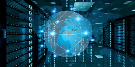 Digital,White,Earth,Network,Flying,Over,Server,Room,Data,Center